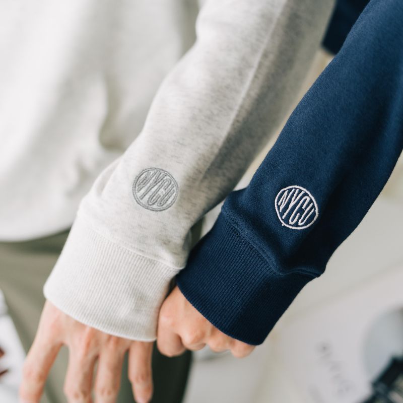立體感十足的QQ毛巾繡以及袖口處的精緻NYCU刺繡
